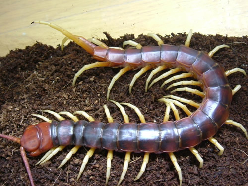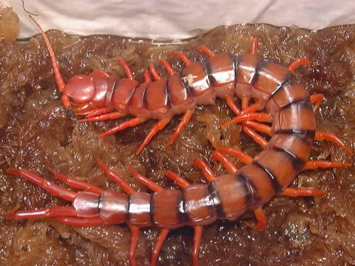 10.少棘蜈蚣/中國紅頭蜈蚣 分布在中國和日本的品種,體型因地區差異巨大,分布在日本沖繩地區的個體可以達到20cm。
