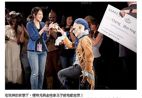 (IMATS)首獎,成為該比賽首位誕生的華人冠軍,13日返國召開第一場正式記者會,程薇穎對媒體侃侃而談自己對血腥、黏膜,還有斷掌的喜愛。